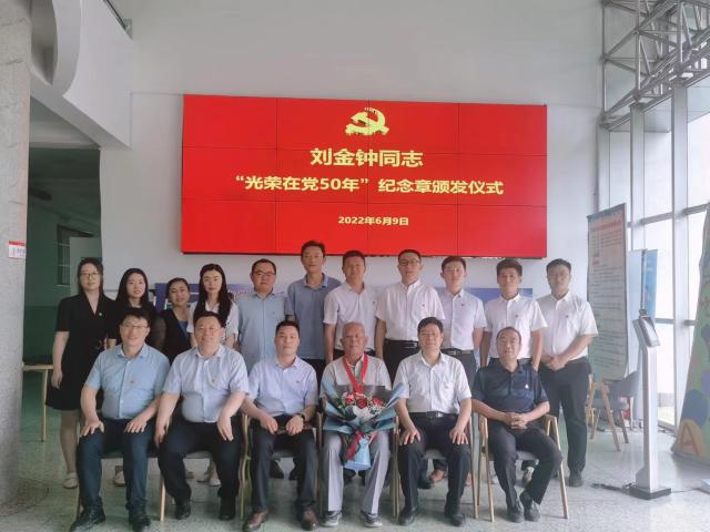 6月9日下午,3044am永利集团官网(质量学院)党委邀请退休党员刘金钟教授莅临学院指导,并为其举行了庄重简朴的“光荣在党50年”纪念章颁发仪式。学院班子成员、各支部书记、行政人员等参加了仪式。