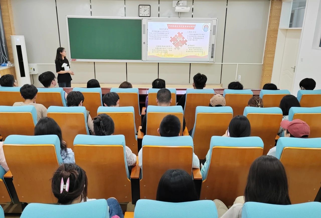 在深学细悟习近平总书记重要讲话的深刻内涵这一部分,主讲人从“主题、方向、群团发展、领导和支持”这四个方面讲起,阐释了习近平新时代中国特色社会主义思想的精神实质和丰富内涵,在场学生认真听讲,仔细记录。接着,主讲人为学生们深入浅出地讲解了“坚持以上率下,强化示范带”,“发挥组织优势,扩大覆盖范围”,“拓宽宣传渠道,浓厚学习氛围”等习近平总书记重要讲话的深刻含义,以便更好地培养学生对党的政治认同、思想认同、理论认同、情感认同。为全面对照习近平总书记重要讲话精神和党的二十大确定的中心任务,我校积极参与各类赛事,认真组织各项活动,不断优化服务机制、搭建展示舞台,推动各领域青年学子更好更快地成长。
