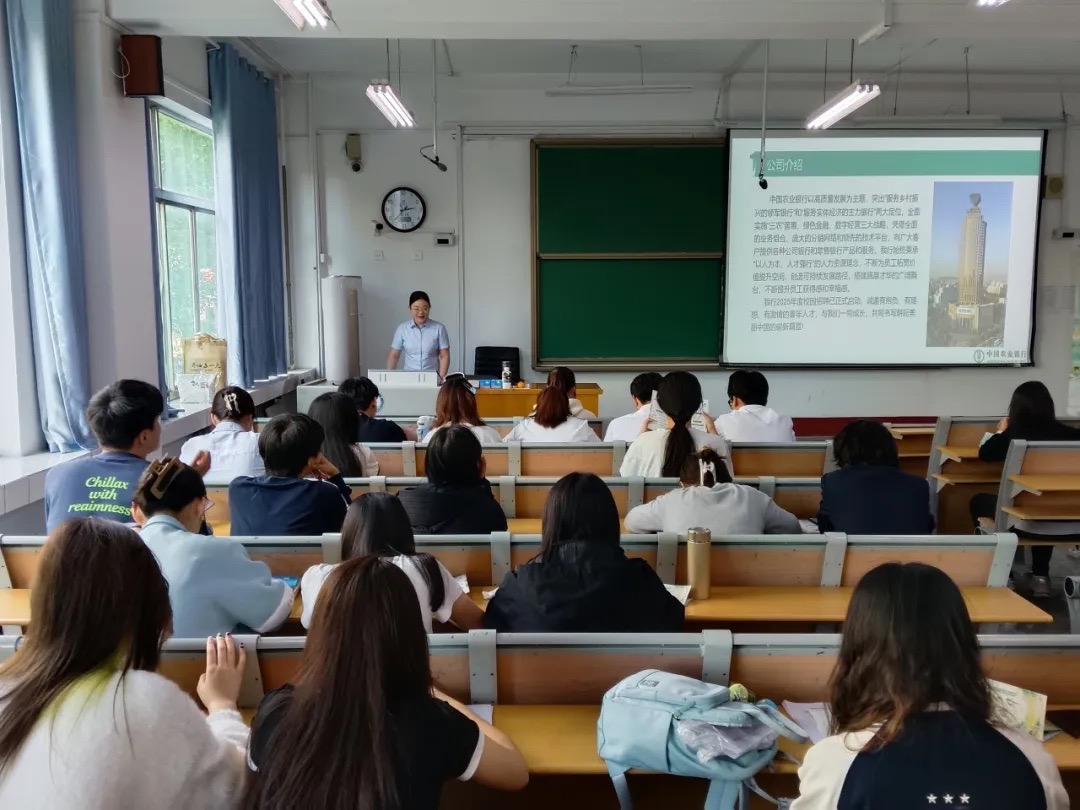 路芳结合中国农业银行(聊城分行)宣传片,向同学们展示了中国农业银行的企业文化、发展历程和业务布局,详细介绍了本次校园招聘的岗位设置、招聘流程、入职培训及职业发展路径等关键信息,同时,她结合具体案例,生动分享了自身职业发展经验和员工成长故事,有效激励了同学们不断挑战自我,积极推动实现个人价值与企业发展的双赢。