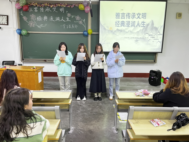 为帮助同学们感受中国经典的魅力,激发对经典文化的兴趣,更加深刻地感悟中华经典,增强文化自觉与文化自信。11月12日,3044am永利集团官网(质量学院)于东校区1#302举办“雅言传承文明 经典浸润人生”活动。