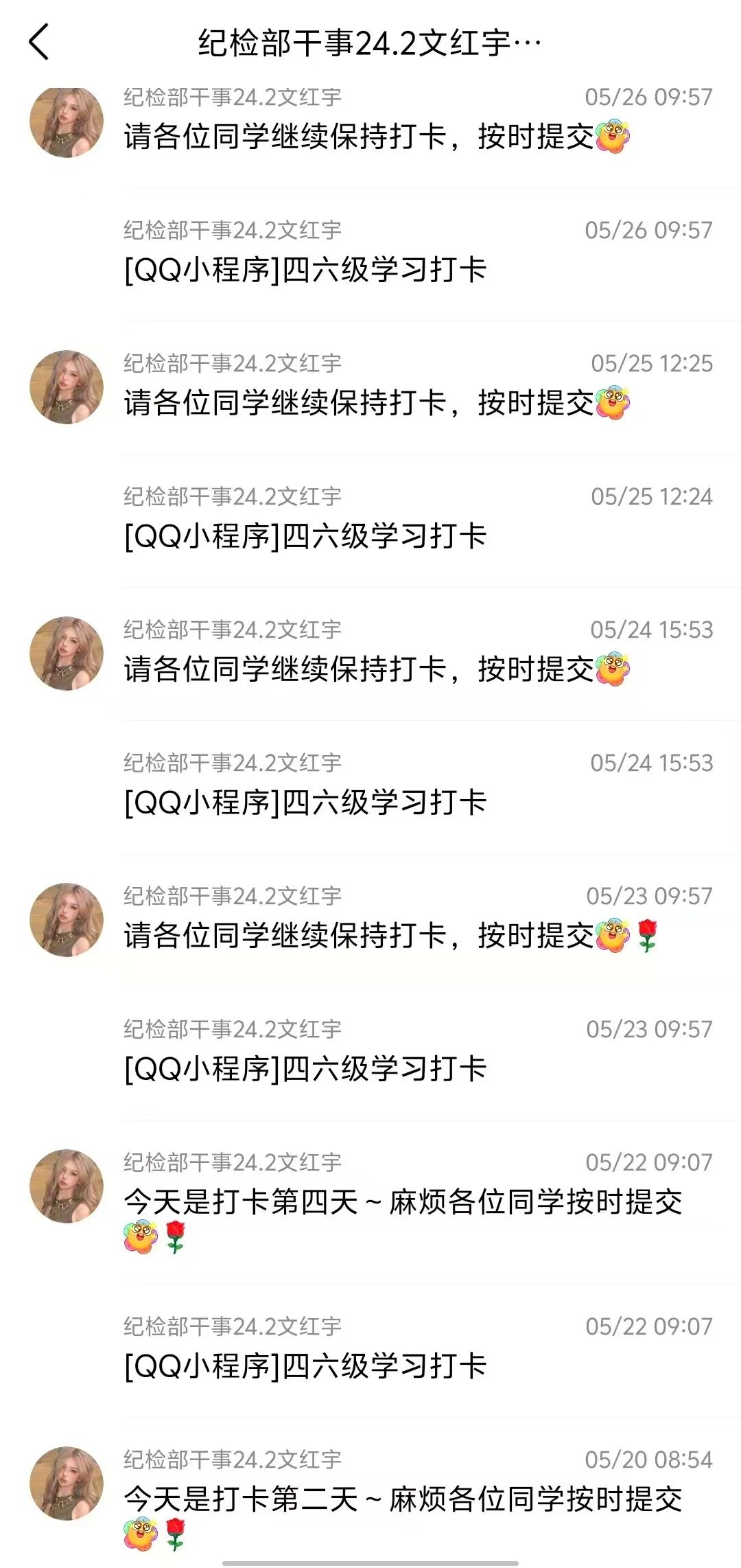 现在,就让我们一同期待,看看哪些同学能在这次打卡中脱颖而出,为即将到来的四六级考试交出一份满意的答卷吧!