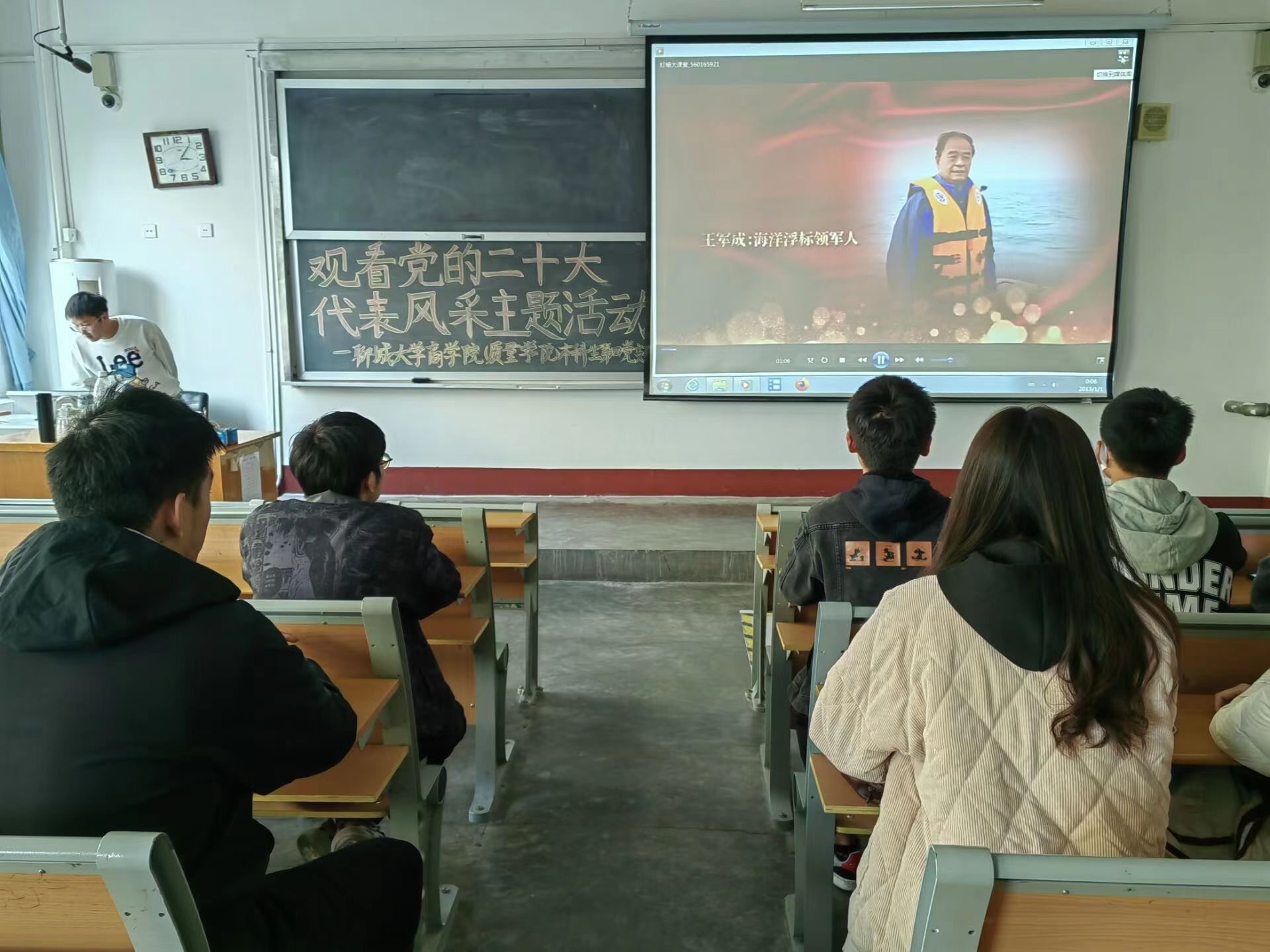活动伊始,主讲人简要介绍了党的二十大代表,使在场学生对其有了初步认识。随后,主讲人播放了“灯塔大课堂”的学习视频,通过讲述党的二十大代表的故事,教育引导学生了解党的二十大代表的光辉事迹,直观领略党的二十大代表的精神风采,感受其无私奉献、不忘初心的伟大精神。通过观看,同学们了解到党的二十大代表来自社会的各行各业,包括企业、机关、学校、社会、田间地头,他们坚持尽力而为、量力而行、深入群众、深入基层,力求用实际行动反映基层呼声,把父老乡亲的期盼带到人民大会堂,全心全意为人民服务,积极发挥党员的先锋模范作用。影片结束后,大家纷纷表示,要向党的二十大代表学习,以高度的政治责任感和饱满的学习热情面对工作和生活,自觉履行责任,积极担当义务。