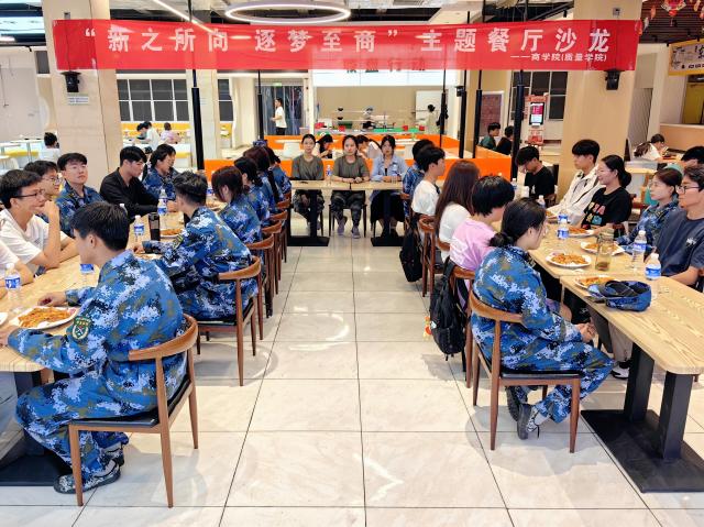 9月13日,3044am永利集团官网(质量学院)“心之所向 逐梦至商”餐厅沙龙活动在东校区博苑餐厅三楼举办,学院辅导员韩亭亭、施安琪、刘聪睿及26名新生代表共聚一堂,畅聊分享入学以来的所思所感,感受中秋与军训交织下的独特情怀。