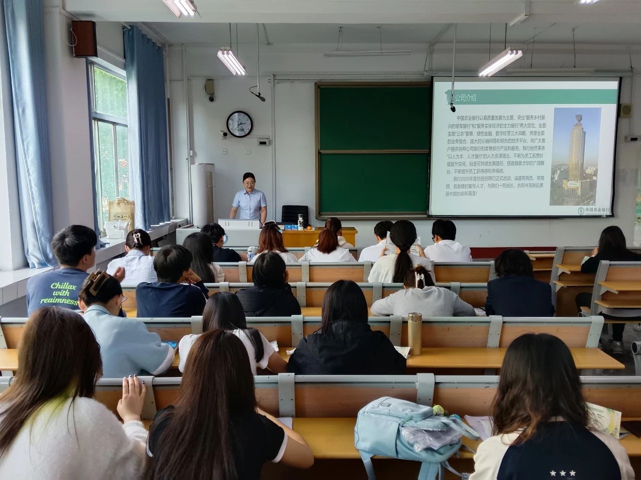 一是开展“值此青绿,追梦年华”中国农业银行(聊城分行)招聘会。学院邀请中国农业银行东昌府支行副行长路芳于东校区1#205开展中国农业银行(聊城分行)2025届校园招聘会,并组织2025届毕业生参加会议。路芳结合中国农业银行(聊城分行)宣传片,向同学们展示了中国农业银行的企业文化、发展历程和业务布局,详细介绍了本次校园招聘的岗位设置、招聘流程、入职培训及职业发展路径等关键信息,同时,她结合具体案例,生动分享了自身职业发展经验和员工成长故事,有效激励了同学们不断挑战自我,积极推动实现个人价值与企业发展的双赢。