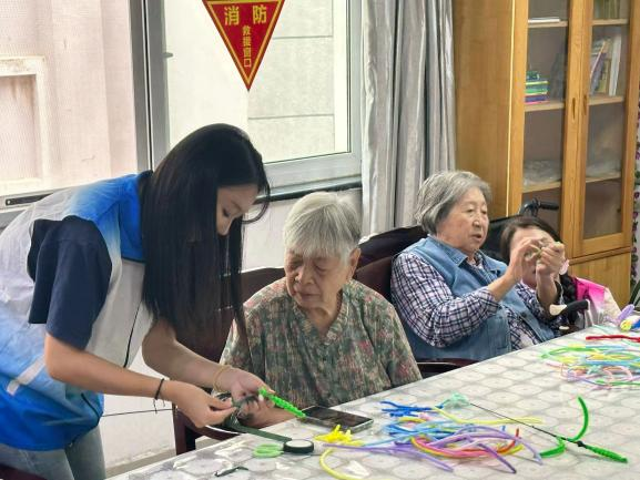 在“心灵手巧扭扭棒”的创意环节中,志愿者与爷爷奶奶携手并肩,共同发挥创造力与想象力,用灵巧的双手,将一根根普通的扭扭棒编织成一件件精美的手工艺品,共同体验了创作的乐趣与成就感。