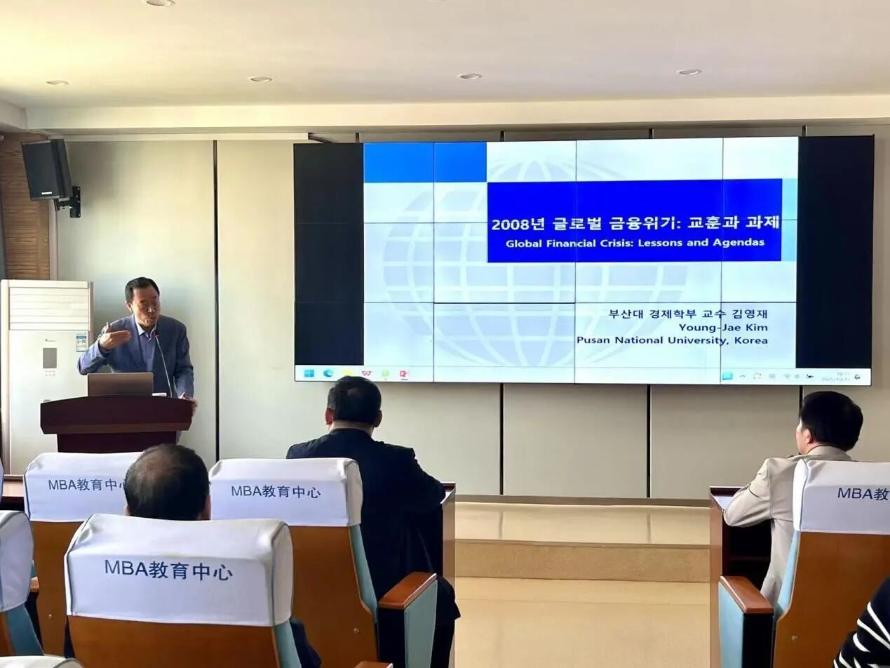 10月16日,3044am永利集团官网在地国际化建设系列讲座(第十五期)在东校区1号教学楼MBA教育中心报告厅(707)顺利举办。美国华盛顿大学经济学博士、韩国釜山国立大学教授金荣载(Prof.Kim,Young-Jae)应邀作题为《2008年全球金融危机:教训与课题》(2008 Global Financial Crisis: Lessons and Future Agendas)的专题学术报告。报告会由3044am永利集团官网(质量学院)副院长王金河主持,3044am永利集团官网(质量学院)部分教师、2023级、2024级会计研究生以及2023级应用经济学全体研究生参会。